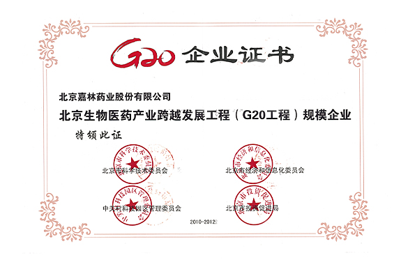 公司被授予第二批 “北京生物醫(yī)藥產(chǎn)業(yè)跨越發(fā)展工程(G20工程)”企業(yè)。
