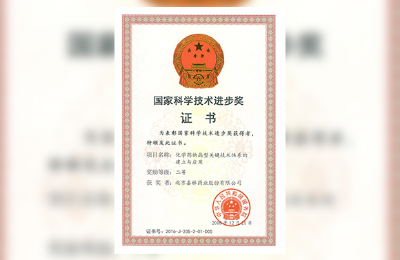 北京嘉林藥業(yè)“化學(xué)藥物晶型關(guān)鍵技術(shù)體系的建立與應(yīng)用” 項(xiàng)目獲國家科學(xué)技術(shù)進(jìn)步二等獎(jiǎng)。