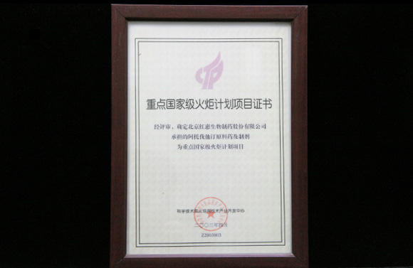 阿托伐他汀鈣原料及其制劑被科學(xué)技術(shù)部審評為重點(diǎn)國家火炬計(jì)劃。