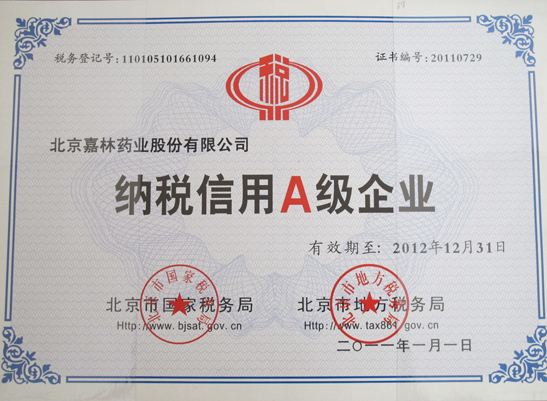 北京市朝陽區(qū)國稅局納稅信用A級企業(yè)授牌儀式于2011年5月18日在北京市朝陽區(qū)國家稅務(wù)局舉行,我公司再次榮獲由北京市國家地稅局和北京市地方稅務(wù)局聯(lián)合頒發(fā)的2011年度“納稅信用A級企業(yè)”榮譽(yù)稱號。授牌儀式上,朝陽區(qū)國稅局領(lǐng)導(dǎo)宣布授牌企業(yè)名單,企業(yè)代表發(fā)言,明建華局長作了講話。朝陽區(qū)國稅局領(lǐng)導(dǎo)為嘉林藥業(yè)等80家企業(yè)進(jìn)行授牌。朝陽區(qū)現(xiàn)有12.6萬家企業(yè),獲得“納稅信用A級企業(yè)”的有215家。嘉林藥業(yè)一貫秉承誠信經(jīng)營、依法納稅的理念,自覺遵守稅收相關(guān)法律法規(guī),按時足額納稅,為打造守法經(jīng)營、依法納稅的社會和諧氛圍做出了貢獻(xiàn)。